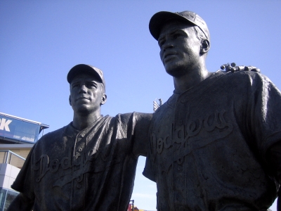 In November, 2005, a larger than life sculpture of Pee Wee Reese and Jackie Robinson by