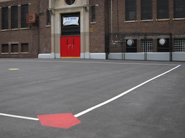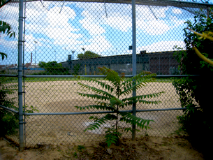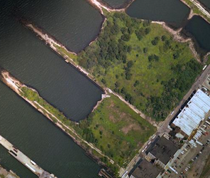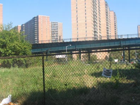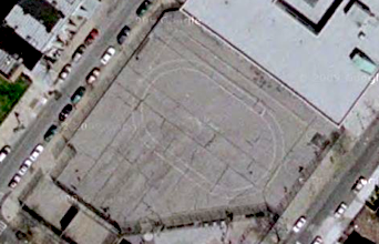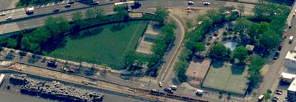 These three fields stand at the north end of a large block in industrial Greenpoint, owned