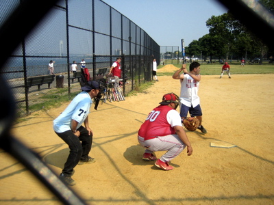 demonstration of the 150 year old Brooklyn tradition of playing ball in any space available.