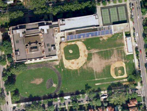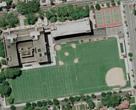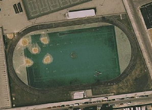 in the snow, 2009 - John Dewey High's modern field Overhead photo taken from Google Maps