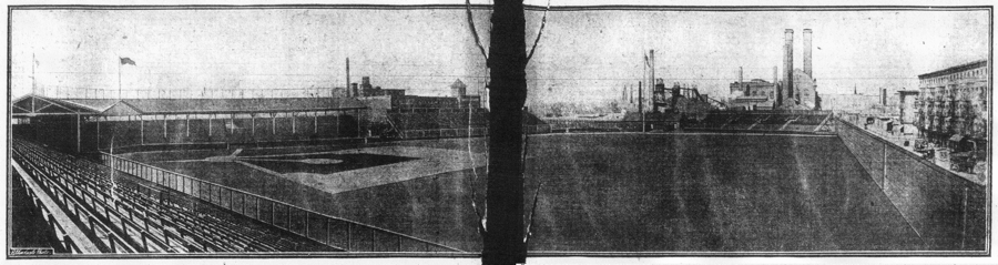 after the 1908 renovation, with new bleachers and clubhouse in the outfield