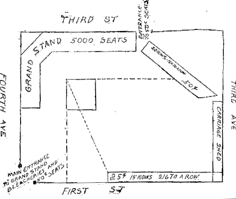 These bleachers would be upgraded to a 50c pavilion in 1908. And here is a Sanborn fire insurance map from 1906:
