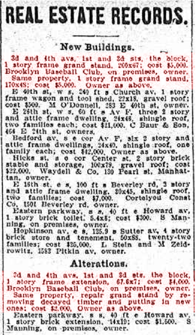 end in May 1898, with the displaced seats moved to the Third Avenue side. The same article about the bleacher changes says: