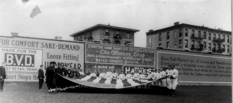 The conclusion is clear to us. The wall belongs to the Federal League Tip Tops, and dates to 1914. If