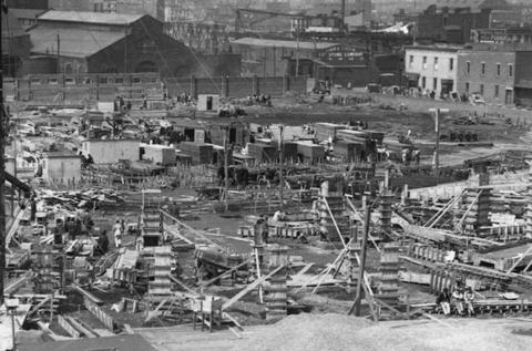 view, and made from wood. Note also the Fourth Avenue subway under construction, dating this photo to 1910-11:
